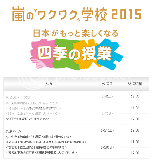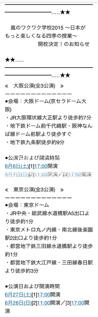今年依舊是兩個場地,一個是大阪KYOCERA巨蛋,另個是東京巨蛋。每個場地都有三個場次。基本上和去年是一樣的。