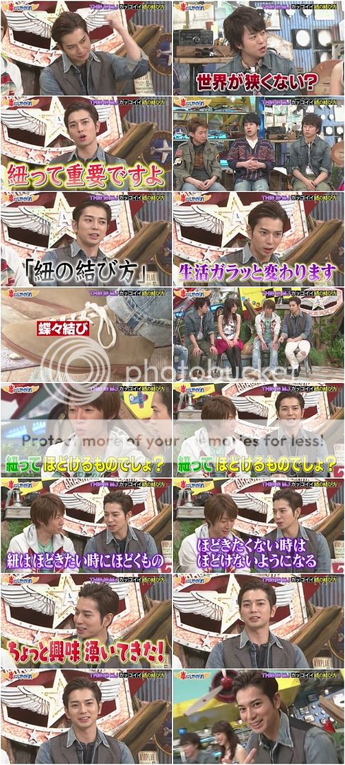 於是J就用雅紀作為道具?哈哈哈!來試試看其中一個綁法。亂弄一通後,雅紀問說這樣有綁緊嗎?J『有喔。』才說完,繩結就鬆開了!哈哈哈哈哈哈!!!太不擅長了吧J!!