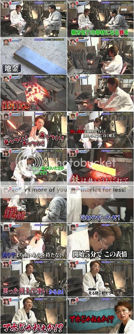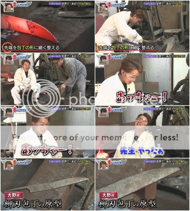 接下來是敲打出刀的形狀。還是好燙啊!!整個VTR就是一直聽到利達在喊好燙好熱!好可愛。