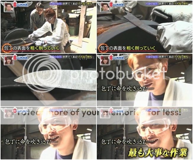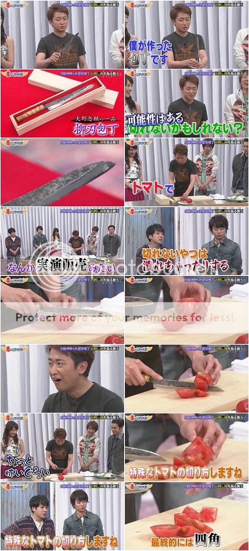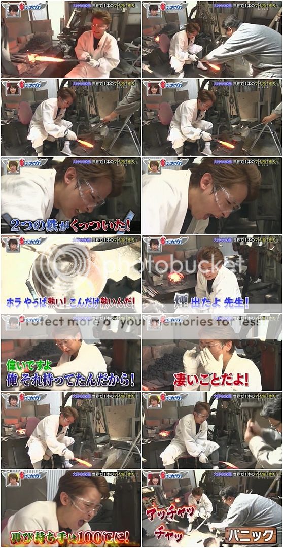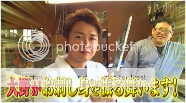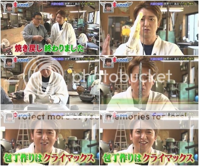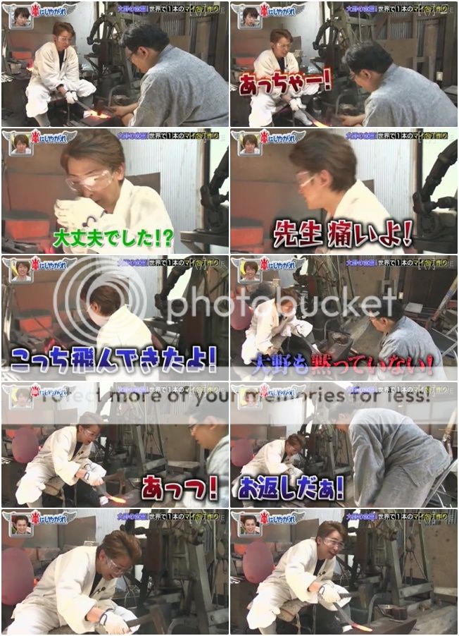 可怕的畫面出現了!!!!!整把刀因為浸到油裡去而火燒起來了!!!!利達你的手!!!!好可怕!!!!好像真的在燒利達的手那樣!!!結果利達自己也被嚇到,當師傅問『沒事吧?』利達就有點生氣的走到師傅身邊直接打了師傅『會嚇死人的啊。』利達問AD桑『你們都被嚇到了吧?』真的!!!!!!!!嚇掉我幾年壽命了啦!!!我們大野智可是很重要的啊!!不要做這麼可怕的企劃啦!