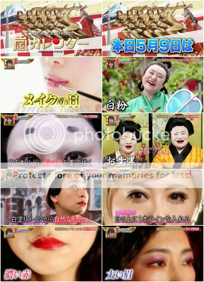 接下來是ARASHI CALENDAR。5月9日是MAKE DAY(化妝日)。哈哈哈!!這裡播放的各式各樣年代的妝容都太好笑了!