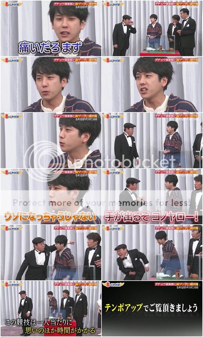 雖然出川桑無法來,但是還有其他芸人來。演起和小龍蝦的小劇場了,還要和小龍蝦打招呼,然後是進行夾鼻子,再來埋怨很痛,然後互毆之後就和解。