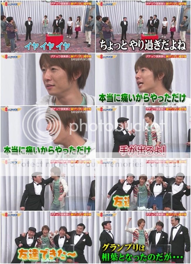 但是這裡好好笑!!原本是出川桑要來的,怎麼知道………………他飛機延誤了,所以無法趕上,翔還在那裡演起小劇場貌似在和出川桑進行電話連線一樣。