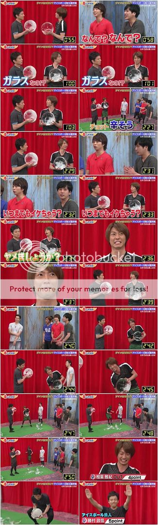 結果其實應該就是冰球開始融化了,冰球表面會有點濕所以一個拿不穩(也是因為太冷的關係),雅紀就直接把球丟在地上了。不過第二名的雅紀有4分。勝村桑有餘的把冰球放在地上,勝出!5分。