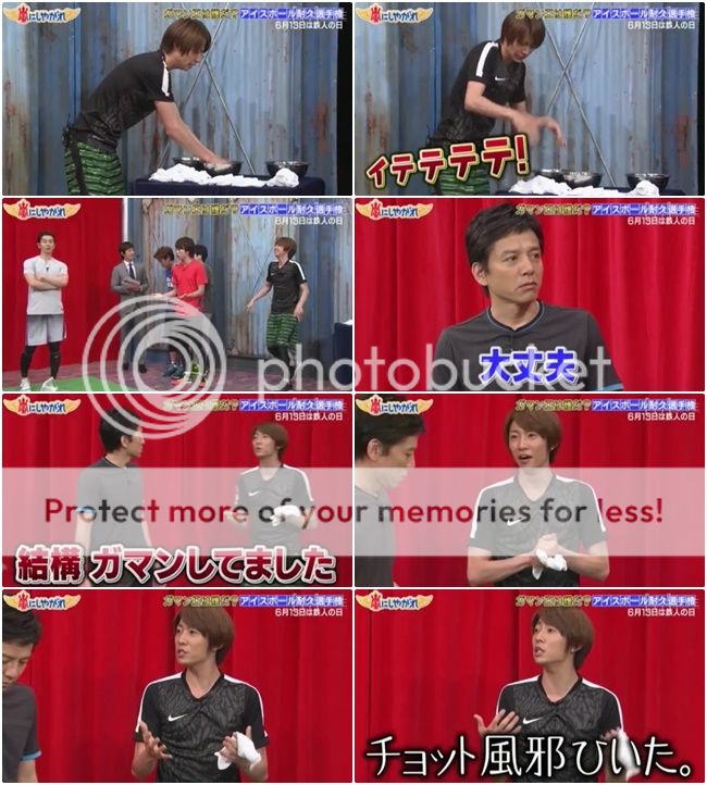 開始了!才剛拿起來大家都開始鬼叫了吧。也太冷了啦!!是冰啊冰!結果第一個掉了的竟然是J!原來我們J弟弟那麼怕冷,完全不能忍耐。(趕緊跑去旁邊泡熱水)