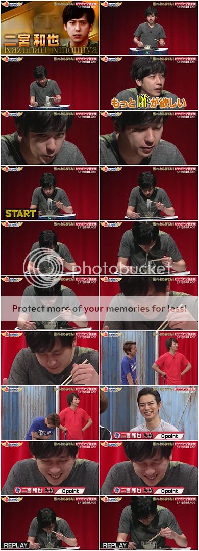 首先第一位選手是二宮先生。整個很有信心,還說希望會更酸呢。可是自己倒數開始前,自己開始心虛的看著鏡頭偷笑了。結果開始後,就噗的噴出那個酸性食物了。害旁邊利達整個笑到彎腰了。