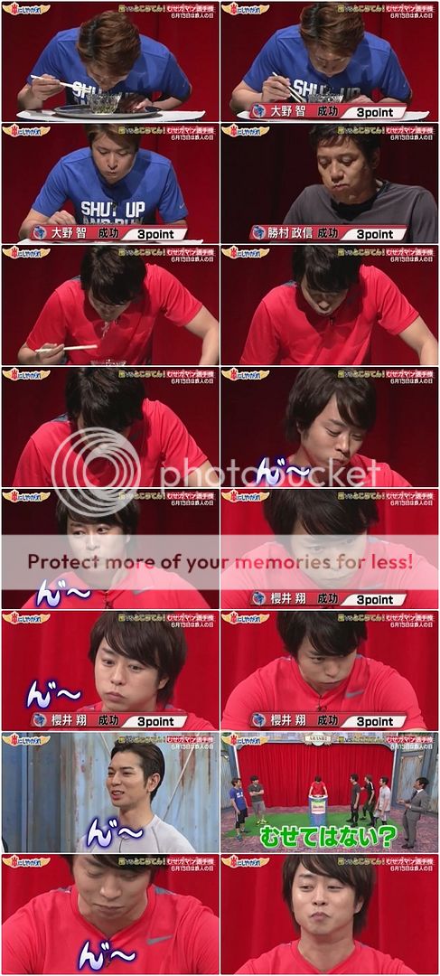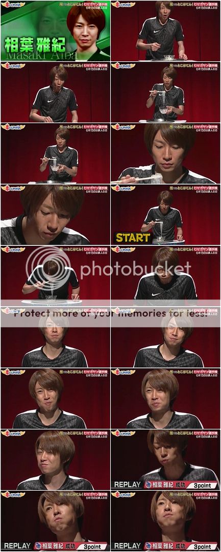 這明明重點不是在於吃東西,而是能忍耐酸度,我們吃貨開始練習起蘇蘇蘇的動作是幹嘛啊?勝村桑『這是他的工作啊?』報告勝村桑!!你說對了!!如果利達的main是釣魚,那櫻井翔的main就是吃。哈哈哈哈!