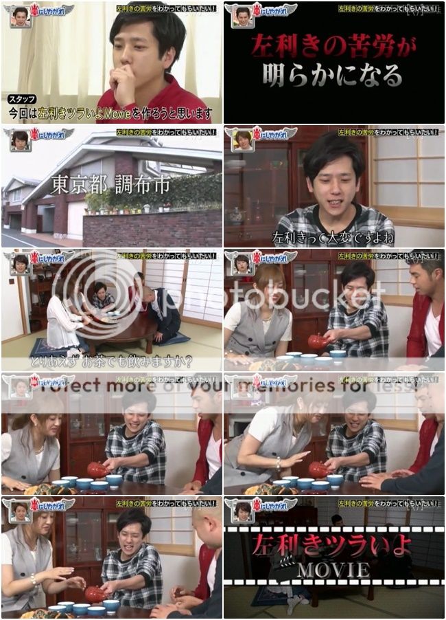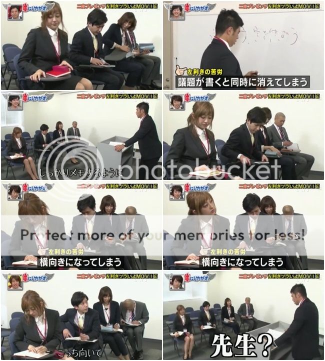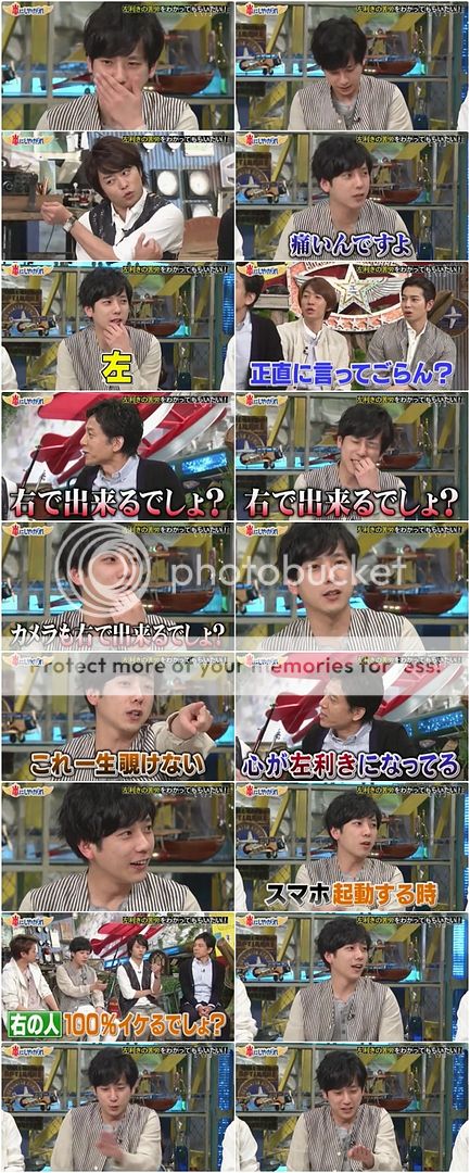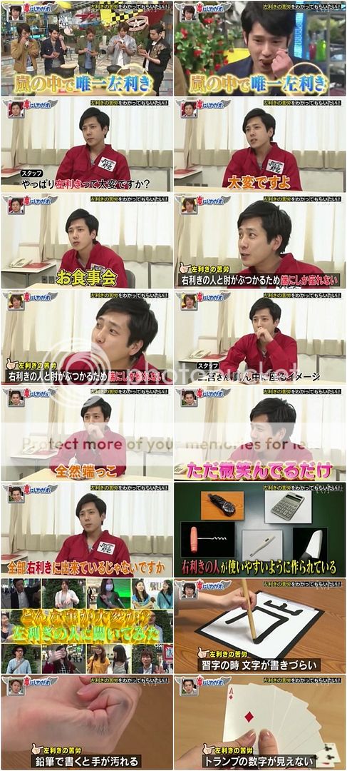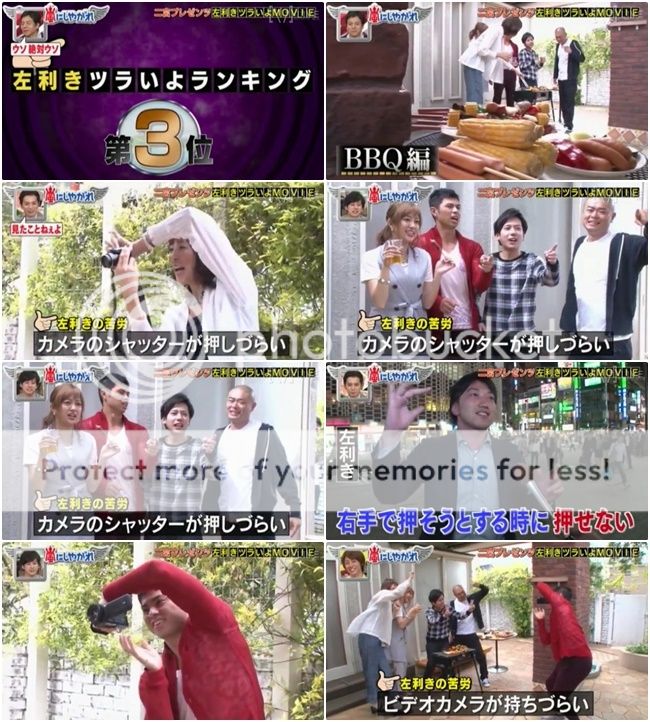 第三名是要拍照時候,左撇子很難按下照相機按鈕。勝村桑也開始在小窗口裡喊說根本是在騙人的吧。J看到劇情裡的事說自己沒有看過這樣的情景。民宗也表示說確實左撇子會有右手指沒力氣按下那個按鈕的。好吧~就是要演的誇張才感受的出他們的辛苦。笑