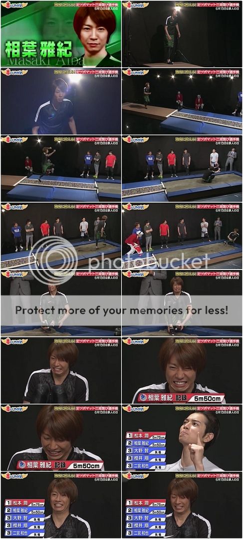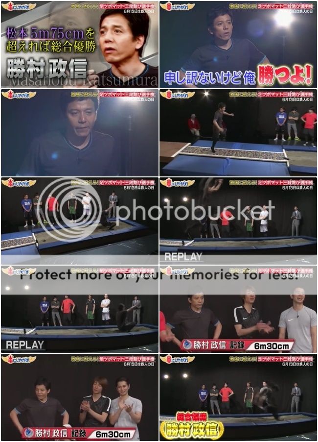最後是勝村桑。勝村桑是否能保持這第一名呢?勝村桑自己也信心十足的說看來會是他獲勝了真是對嵐不好意思。完全有餘的不痛的跳過去了!!跳好遠啊!!6m30的記錄。果然勝村桑是鐵人!!