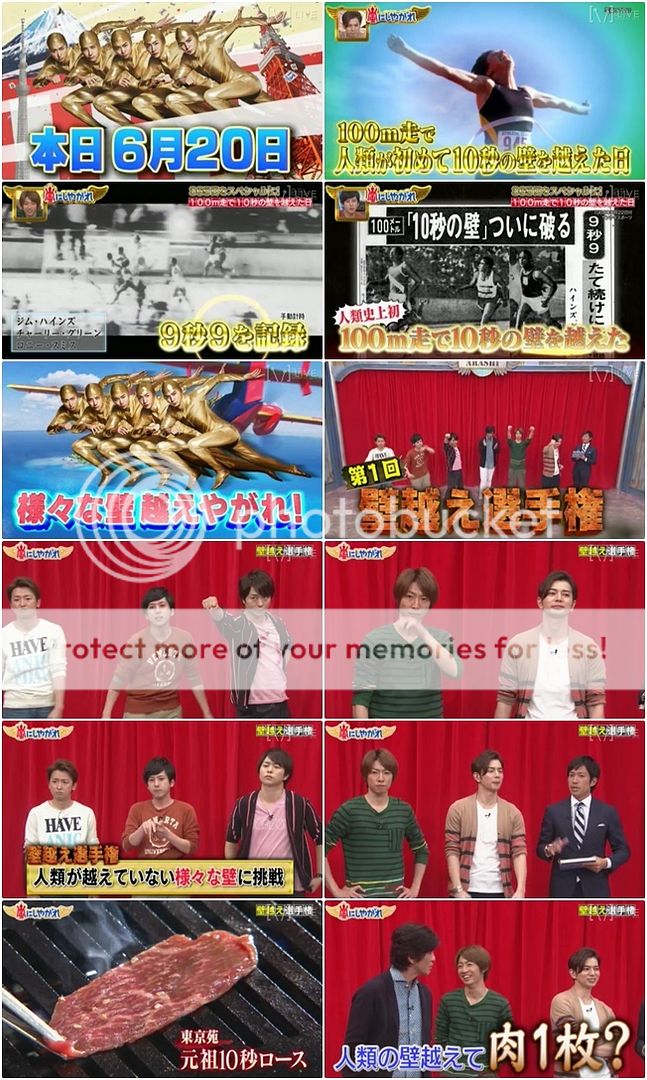 今天的ARASHI CALENDAR企劃要說的就是6月20日。這天是第一次有跑出100m10秒成績的日子。今天就要嵐來挑戰各式各樣的最高紀錄。而能夠挑戰紀錄成功的選手可以吃一塊這個頂級的牛肉。