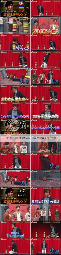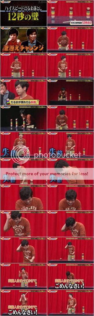 結果花招那麼多,也是第一座就倒了啊!!失敗!!哈哈哈!!門把全部大笑!因為佐藤桑的動作,NINO『看到大叔了!!』不想看到這樣的佐藤桑,於是給佐藤桑第二次機會(這樣才能繼續笑)