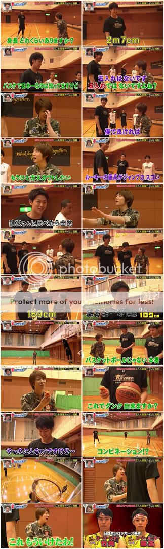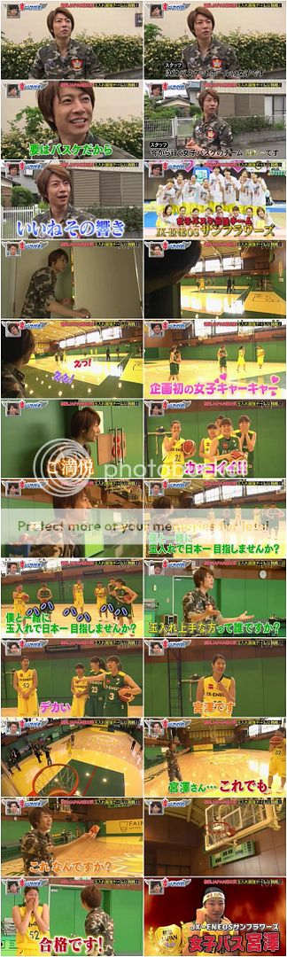 籃球員當然不服輸說可以試試看。雅紀還需要多一位選手就請這位SUPER STAR來推薦。雖然這第二位選手站在STAR旁邊看起來很矮但是你看啊雅紀站過去那個男生也比雅紀高哦。雅紀這樣看起來特別可愛啊!!明明是175身高竟然還顯得那麼矮好可愛啊!!兩位來試試看投小球,竟然給他們順利投籃進了。