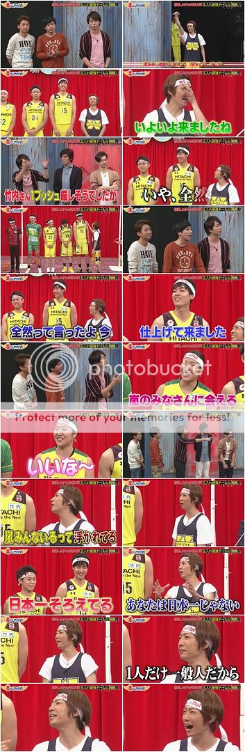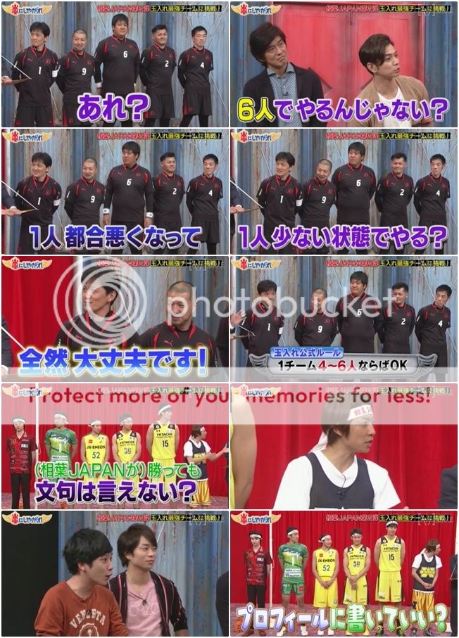 請出大阪第一名隊伍,奇怪6人少了一人?隊長說其中一位無法前來,但是比賽規則是4~6人一隊所以這樣也完全沒關係。雅紀就有點質疑的說那如果相葉JAPAN贏了可不能說人多欺負人少不算數哦。哈哈哈!!