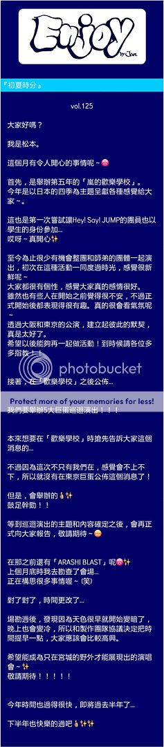 目前還是希望嵐把精神集中在宮城的LIVE!好多事情得喬啊,請總監和事務所加油了!