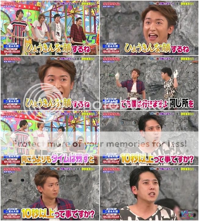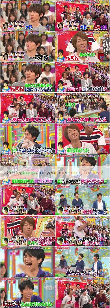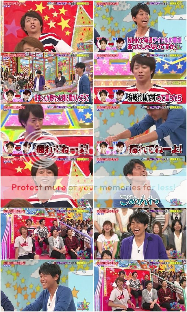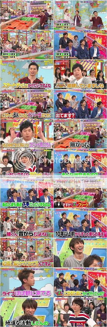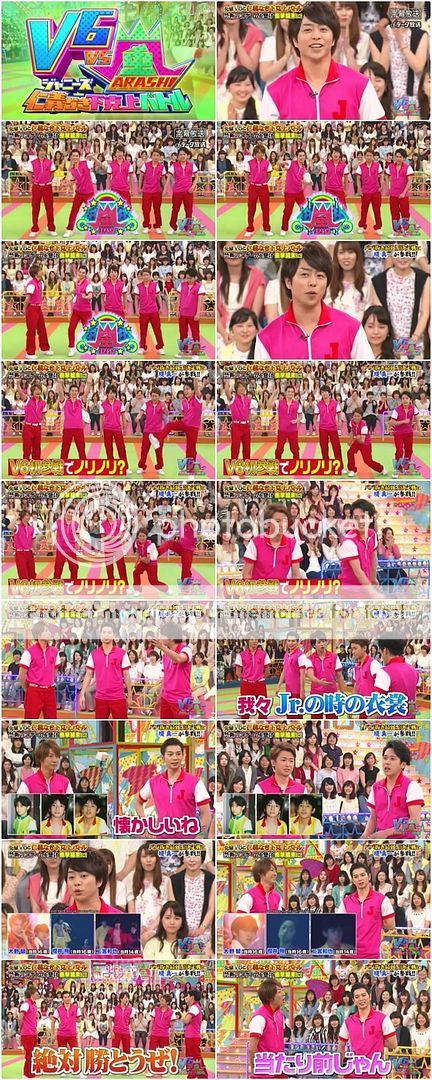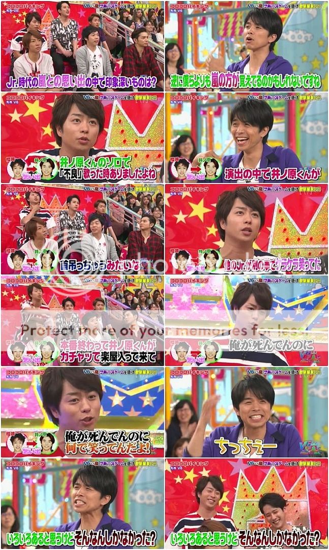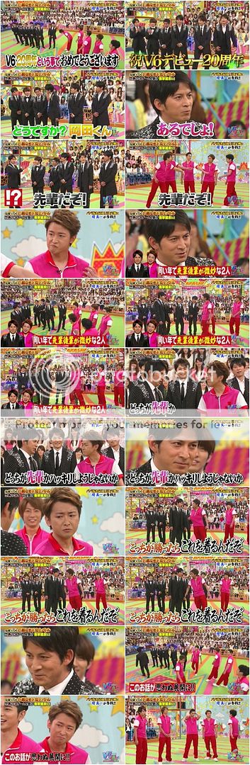 今年也是V6出道20週年!おめでとう先輩!!!所以今天來肯定有信心要獲勝的吧?井之原君看去岡田君方向『岡田君如何?』岡田君『一定有的啊!』於是這個眼神肯定就是對上了我們家那位每次看到人家岡田君就一定要說到自己是前輩,岡田君是後輩這事的大野桑。那個臉!!!!你真是最近tension太讓我捉摸不定了!staff桑打上的字也好可愛!!同年前後輩的微妙二人組。噗!原本NINO還極力的拉住利達不讓他對抗,畢竟是前輩,但是後來放棄,讓利達走到面前去和岡田君對上了。今天難道是要來以對決定出誰才是前輩嗎?岡田君『今天就一次讓你看看誰才是前輩。』利達也不輸陣『輸的那方就穿上這個(利達身上的衣服)。』哈哈哈哈!!!真的是太有趣了你們兩位同級生!