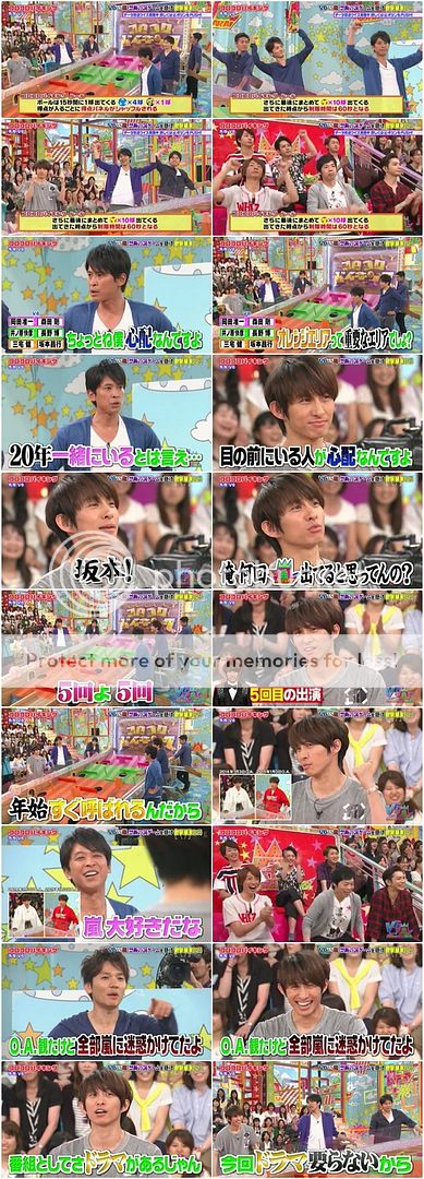 開始本番前,嵐門把有先體驗了一下遊戲。還真是玩的很開心啊。第一棒要對決的是坂本利達和J。被NINO說他們是差距12歲的イナシシ7啊!さすが弟控!!只要是J的事都記得好清楚啊!!!結果今田桑在旁邊一頭霧水。請你們也給今田桑解說一下什麼是イナシシ啊!!