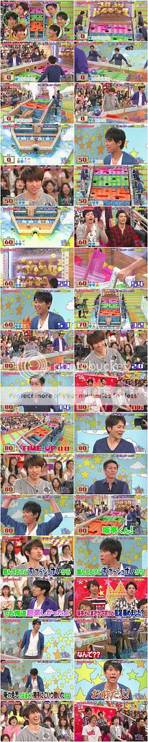 開始對決了!大家都有來過番組啊,但是總覺得大家都好ドキドキ的在進行遊戲啊。一開始就在綠色區直接把球送進洞裡了。第二課球進了金色50分。但是後來發現健君和坂本利達好像一直都只會往一個方向去,所以後來都沒再進50分了。很快黃色小球就出來了,粉色區兩位年下keep住全部的球,但是橘色區實在是太慢了啦。於是掉了好多球之後,一顆黃色小球都沒送到橘色區那裡就結束了。結果80分。