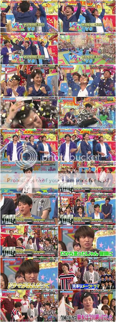 今田是V6隊獲勝!!!還噴小碎花出來慶祝我們V6首次全員來挑戰嵐就獲勝了!!