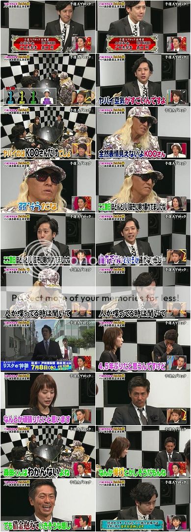A BLOCK嵐代表是NINO。其他對壘嘉賓有剛君和惠梨香桑,兩位是為了番宣新劇來的,再來就是DJ KOO!竟然戴墨鏡!!NINO說看不到KOO桑的表情因為半張臉都被遮擋住了。不過感覺最弱就是KOO桑。KOO桑反抗說知道要來,前幾天就在特訓了。NINO說最難懂的應該就是剛君。