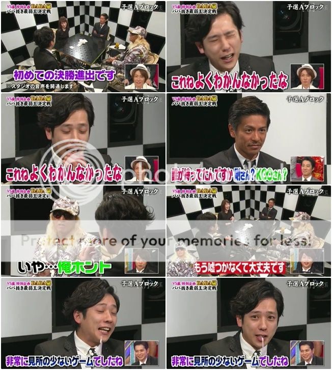 看著場內的四位,外場翔說現場緊張感可不是蓋的。KOO桑也一直沒辦法pair成功,更沒被NINO抽走鬼牌整個緊張到快爆炸。表情好好懂啊!KOO桑應該是因為太緊張,一直麼麼的說了些話。天音問翔知道KOO桑在說什麼嗎?翔重複了一次,加『雖然都知道他在說什麼,但是不知道這話對這個比賽有什麼意義。』哈哈哈哈!!!淳桑也附和說『雖然是日語但是完全不知道意思。』