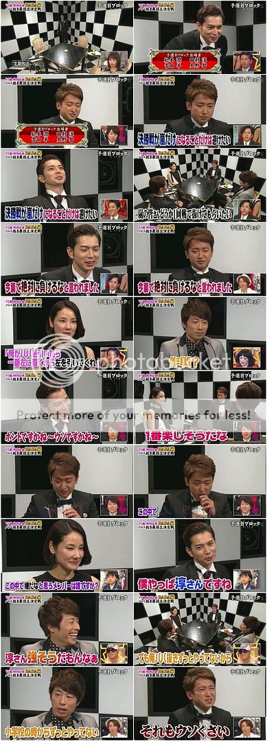 雅紀打擊好大!雅紀『被他抽到了啊!』翔『你到底在幹嘛啊!』走了兩圈,雅紀也都一直沒pair成功。但是櫻井翔你也太酷了啊!!表情都沒露出破綻呢。淳桑倒是很lucky,連續兩圈都一直有湊成對。雅紀又開始慌張了!!やばい!!