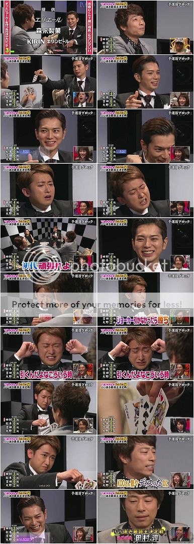 雅紀喃喃自語『要相信自己。』翔兩張牌都抓的超級,雅紀都開始慌了不知道到底是哪一張。結果……………………把ACE抽走了!!!!!耶!!!!!雅紀你脫離白色西裝了!!!!!抽到的當下,雅紀整個尖叫出聲『太好了!!!!』