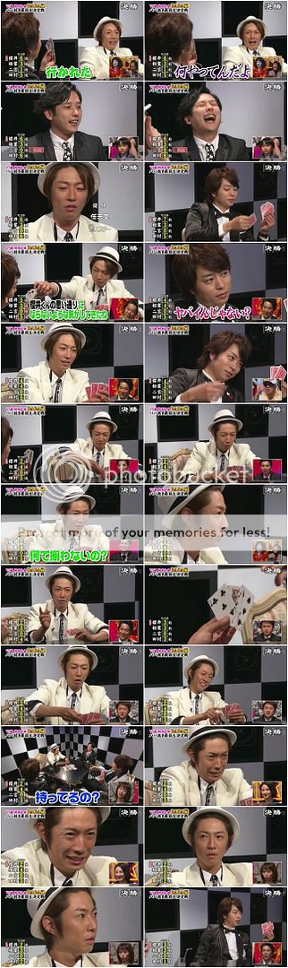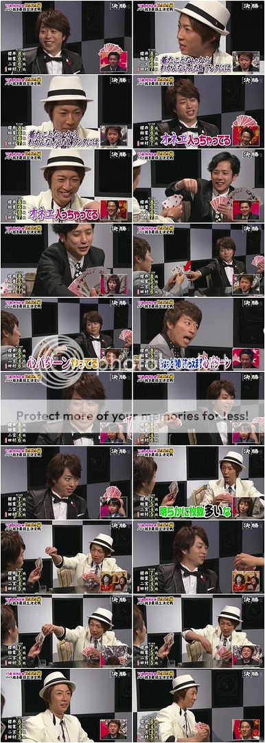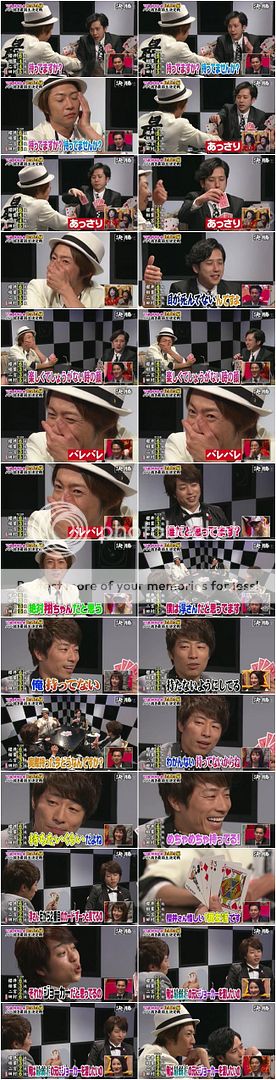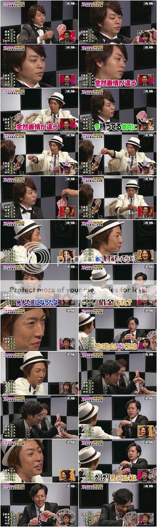 雅紀好緊張一直不知道要抽哪一張。雅紀『翔醬,看一下牌。』翔『我才不要。』哇哈哈哈!!!雅紀『就這樣掃過去就好。』