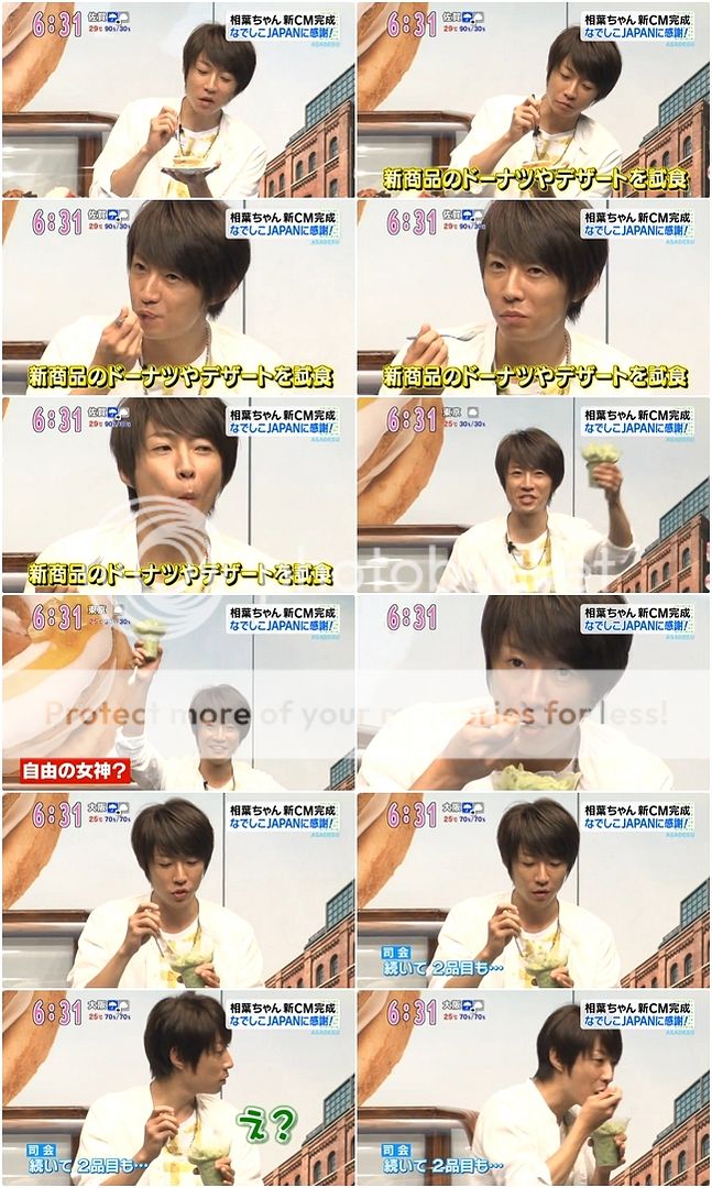 現場讓雅紀吃了那款夏日檸檬口味的DONUT。美味しそう!想吃啊!最喜歡看我們雅紀吃東西了~