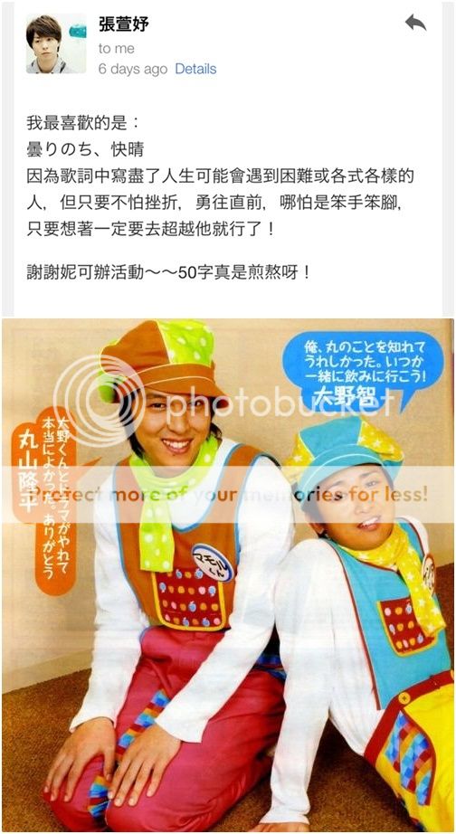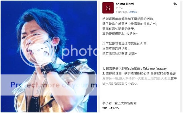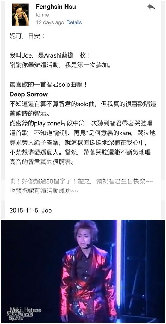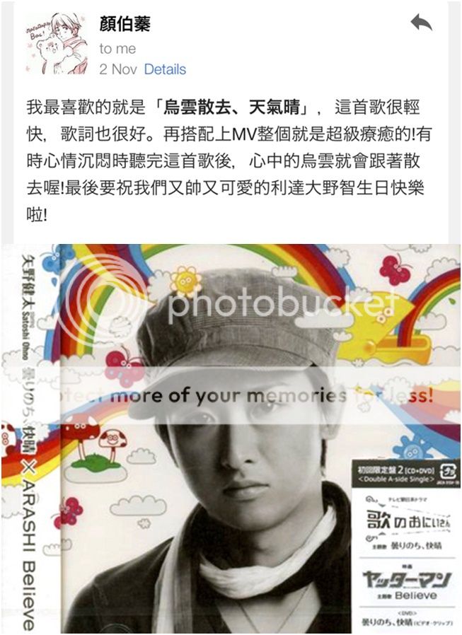 說得有點像永別。哈哈哈!才不會!接下來雅紀生日我也要送禮物喔!!雅紀baby要和翔夫君同歲了呀!這難得的一個月櫻葉同歲數可是大事啊所以少不了慶祝一下。哈哈哈!我正在想活動了,邁入12月會給大家先預告!請期待~