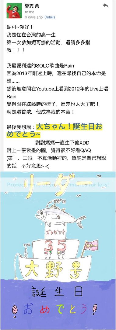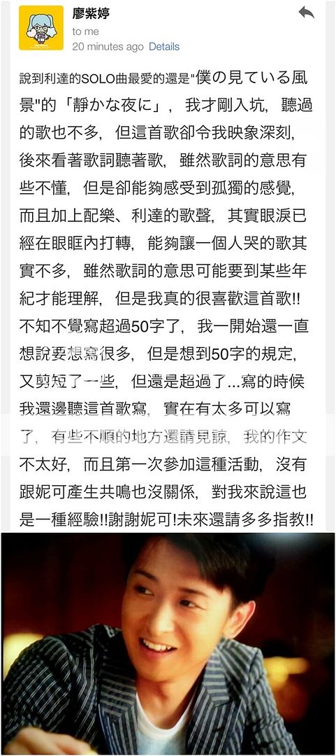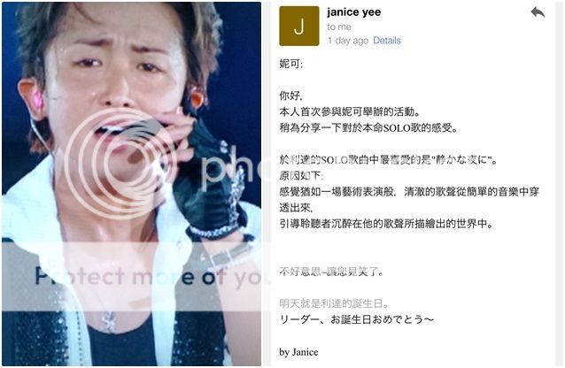 最後再次感謝大家的參與!2015年也為利達慶祝生日了!雖然今年無法到大阪去參加利達的慶生場,但是想藉由今天來同時為利達慶生!HAPPY BIRTHDAY DEAR LEADER!!!!(回想去年門把把蛋糕推出來,利達驚訝的臉,還轉頭去問翔『哪首歌曲?』)