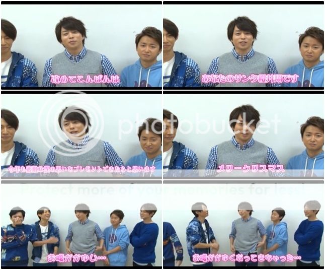 輪到翔的聖誕message。好正式哦。說這次也依舊是大家的聖誕櫻井。說完了好正式的message後其他四個一陣安靜。喂喂!這樣太讓主播不安了。哈哈哈!