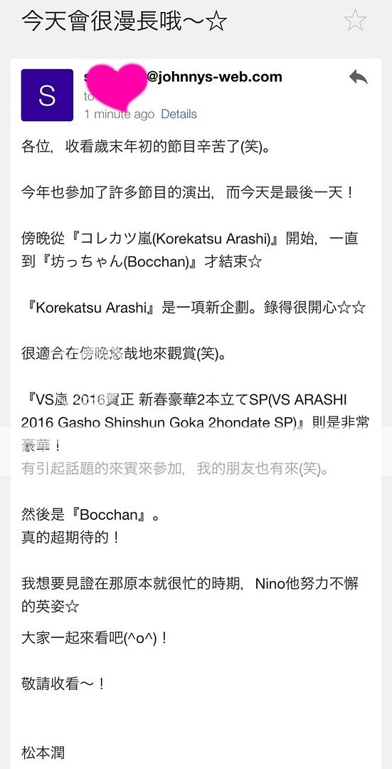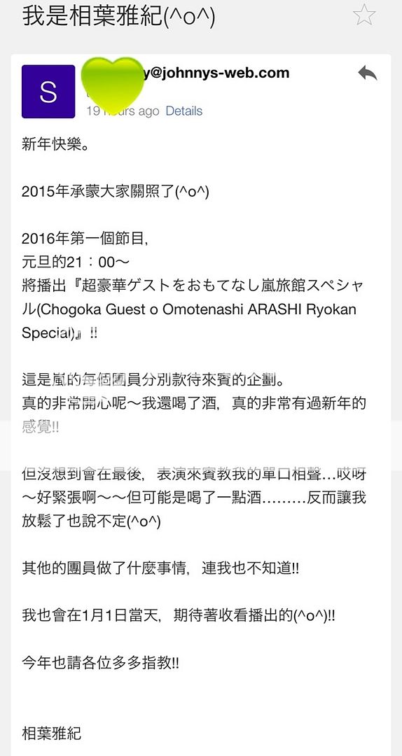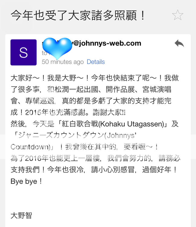 好特別啊今年!!門把都有寄信來到Jweb會員的mail送上2015年跨2016年的挨拶呢!去年都沒有啊。呵呵