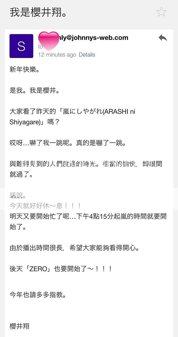 然後1月1日依舊是嵐的休息日所以新一年的第一天一定要好好休息,充足了電來迎接2016年的忙碌喔~