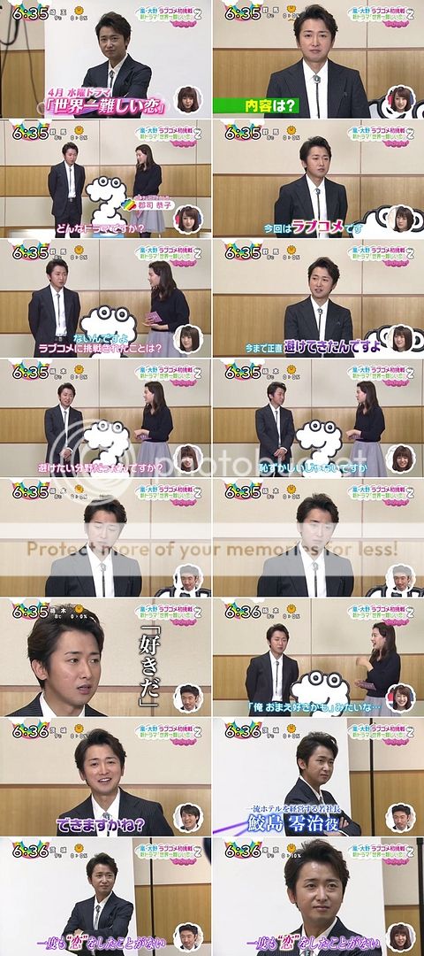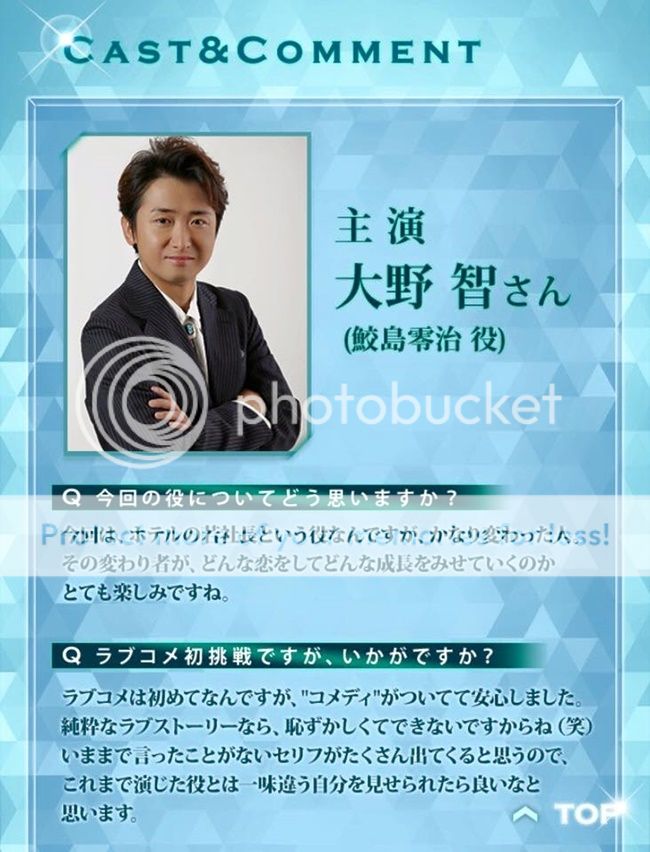 問利達這是部怎樣的劇?利達說這是部愛情喜劇。這是利達第一次挑戰愛情劇吧?利達表示真的之前都沒有,一直以來都避開這樣的劇因為太感到不好意思了。35歲大野智終於要挑戰愛情劇了!!不知道自己能否做到,但是我覺得利達絕對沒問題!!我很期待你搞笑哦!(重點錯了吧?)還有期待門把逼問你是否有kiss scene(喂喂!根本不是重點)