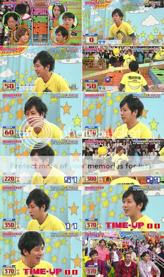 完全就是殺老師在給指令的進行。也太厲害!!我說你在嵐隊時候有這麼厲害嗎?連進了好幾次50分呢。最後370分結束。我說這也太高分了吧。才第一個遊戲啊。也給你家門把一點面子啊。