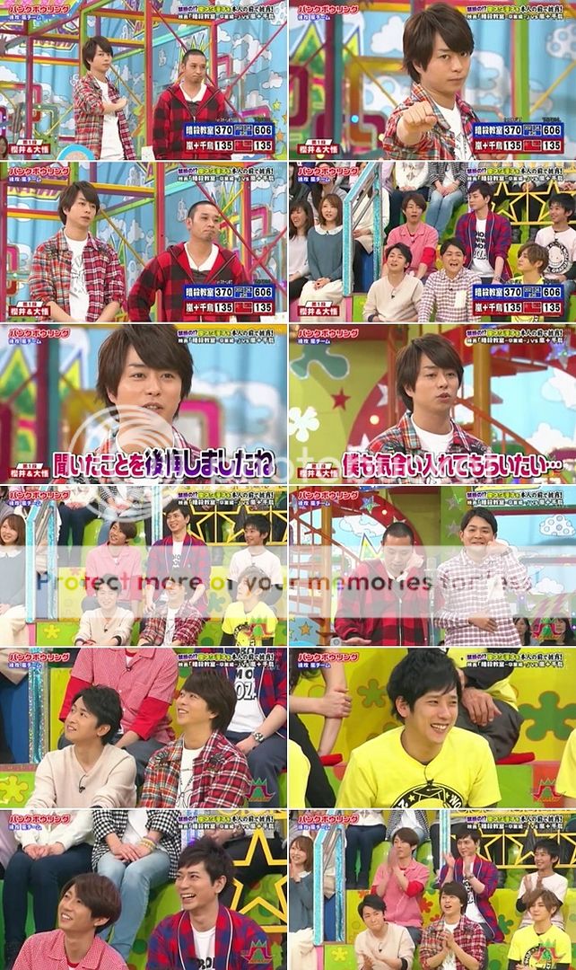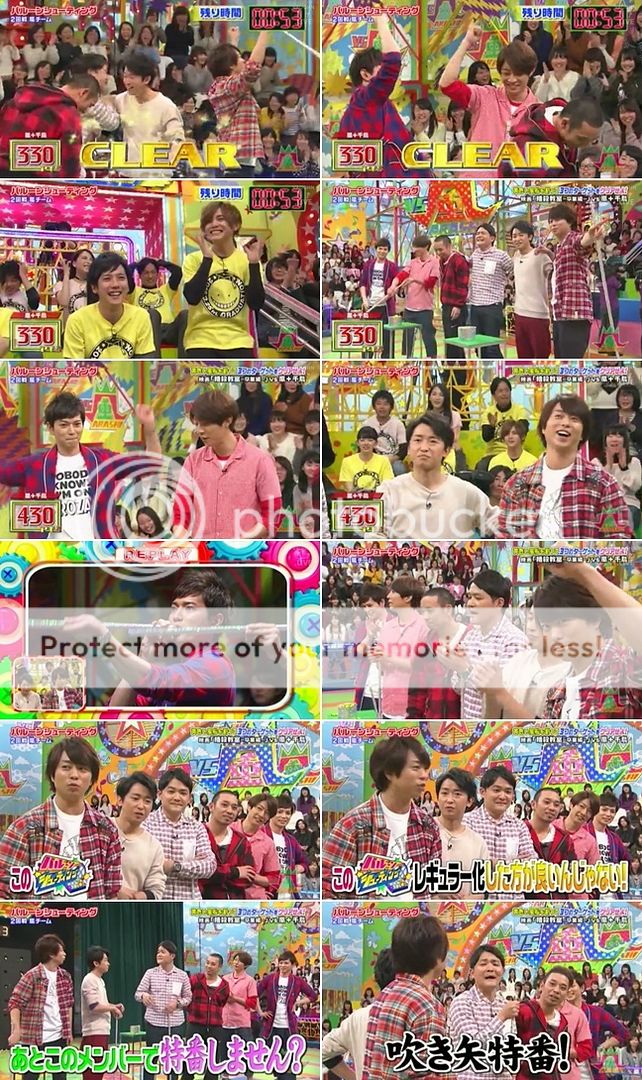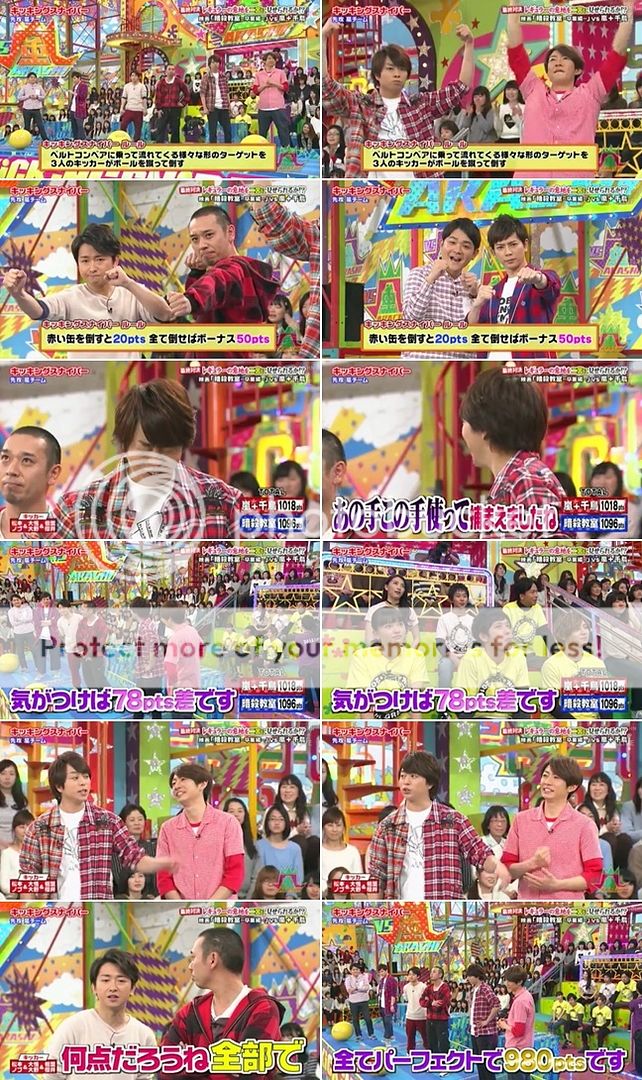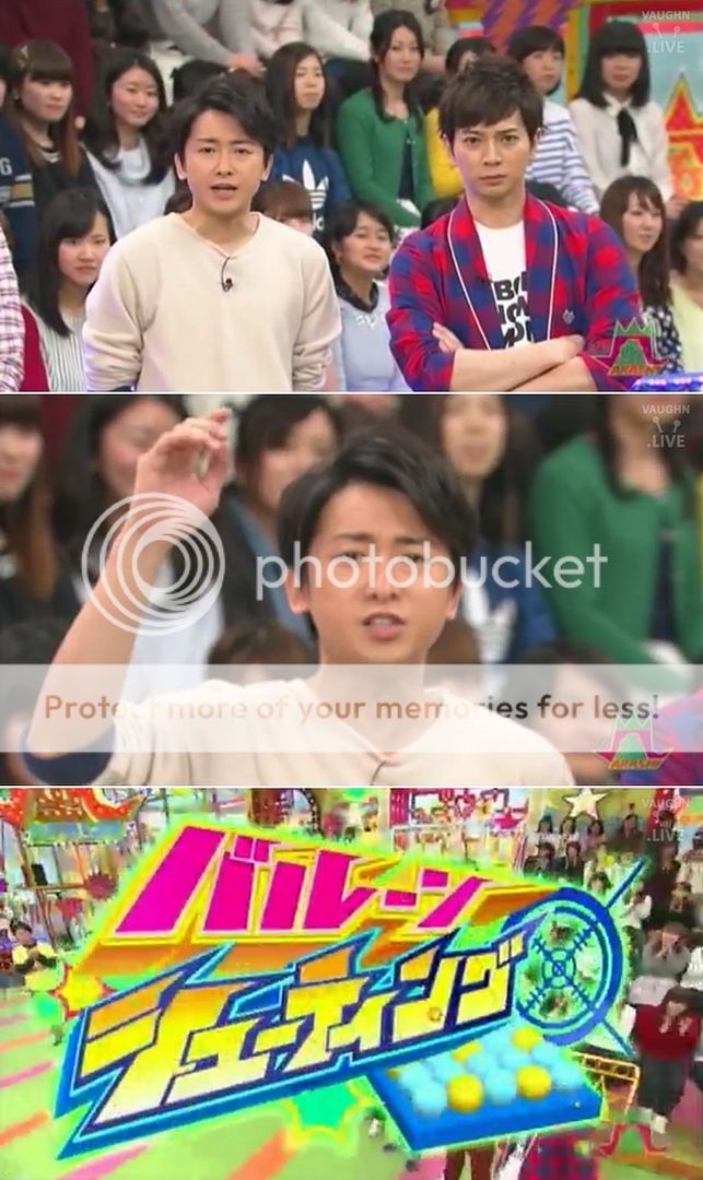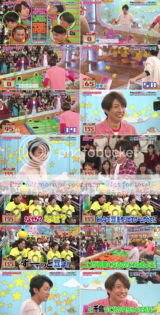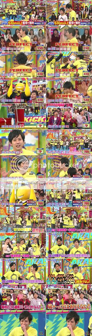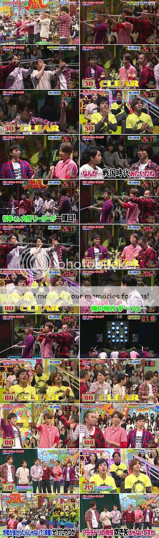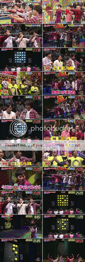 結果這次嵐隊真的好厲害啊!!我說翔原來最厲害的遊戲還是得用嘴巴嘛。哈哈哈!!我看他都射了好幾個黃色球呢。(不知覺這裡就只看了翔不知道為何哈哈哈)