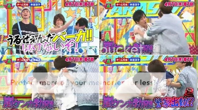 只剩下4人的嵐隊絕對需要強一點的PLUS ONE來幫忙。那就希望兩位今天不要來扯後腿才好。我說我們家殺老師很厲害喔!!你們可別來鬧喔。哈哈哈!今天我好苦惱到底要支持哪隊啊(都一樣嘛)