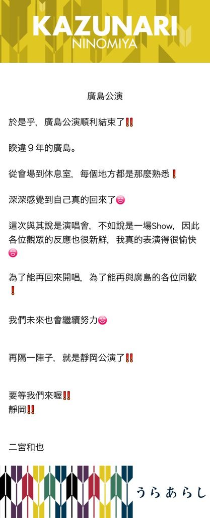 真的是久違的ARENA TOUR啊~~今年沒辦法看到,希望明年有機會啊啊啊啊。嗚嗚嗚~~~