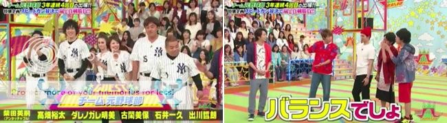 今天對決嘉賓是元野棒球隊。出川桑怎麼會出現在那個隊?一點也不適合。哈哈!