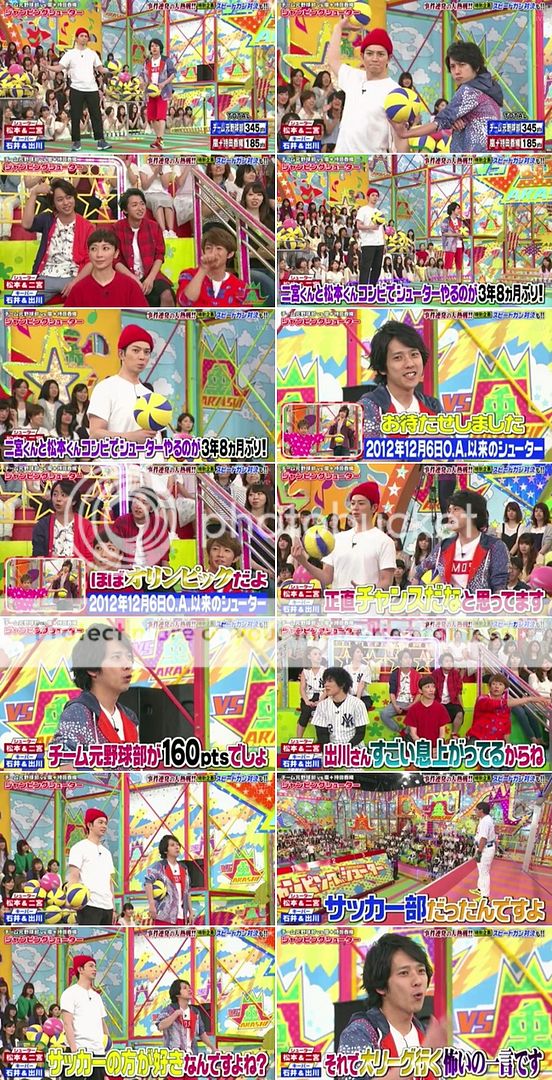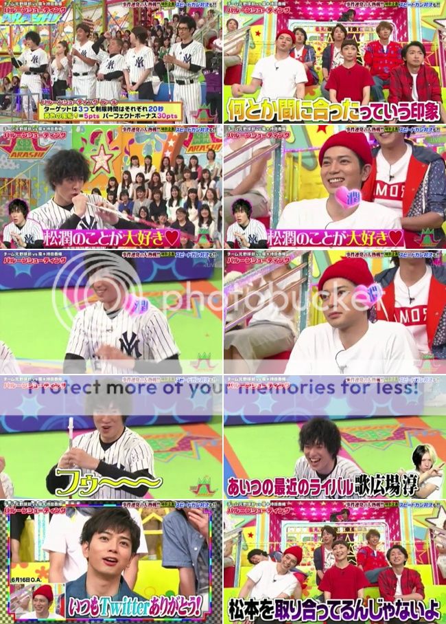 是說高畑桑超喜歡J的。明明高畑桑很厲害一直射到氣球我都驚呼了,但是一轉身就用射箭的要射J(射中J的心的意思),於是J就是呈現這個不屑的臉。哈哈哈!!有位弟控就在後頭告訴松本先生說最近這傢伙的地位要被歌広桑搶去了(就是之前來過還被J關注twitter那位)所以差不多時間要再來VS嵐了。哈哈哈!!這是競爭松本潤的專屬地方嗎?哈哈哈!這不是這個節目的目的啦。笑