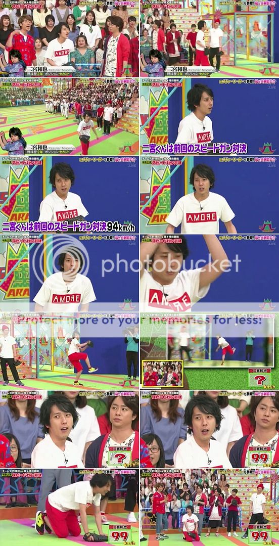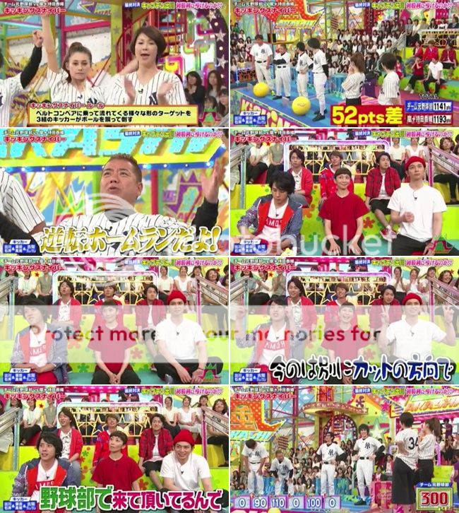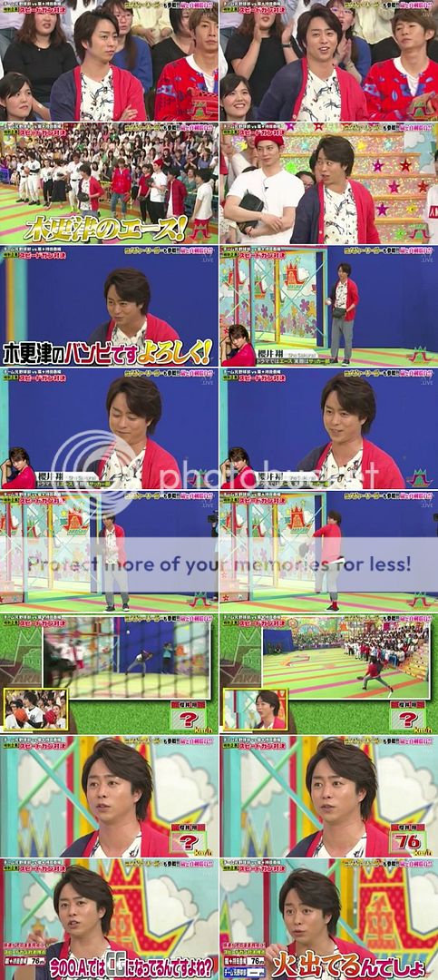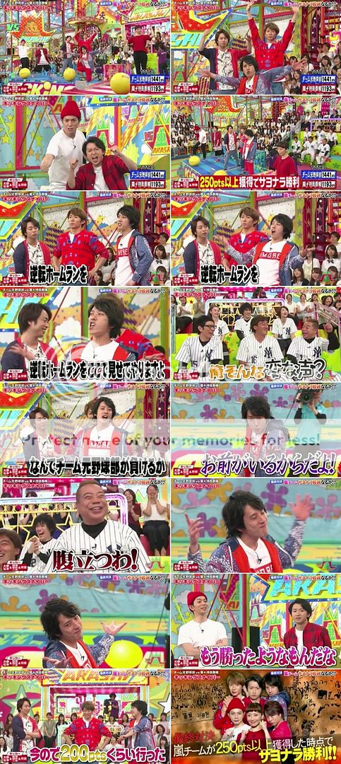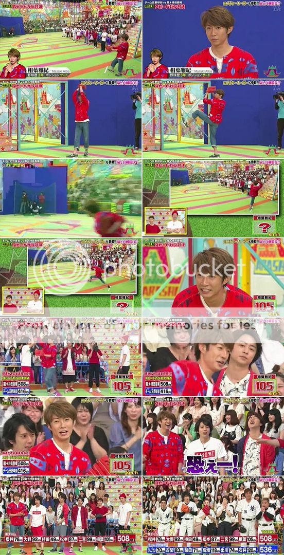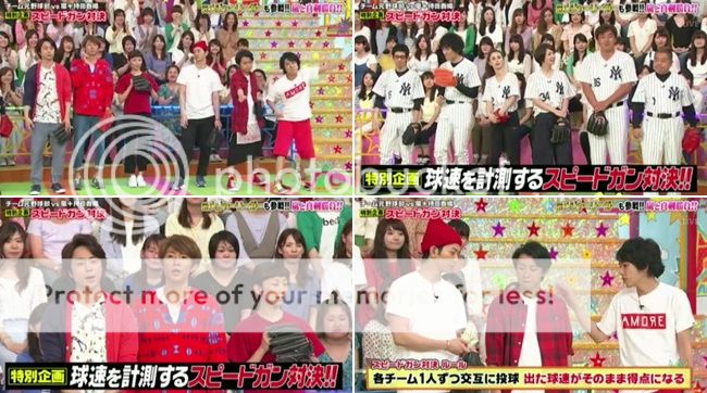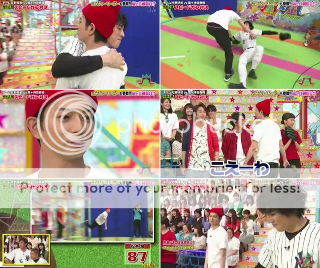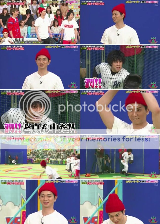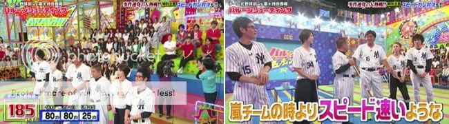 最後是嵐隊的ACE出場了!!さすが有自己棒球隊的雅紀!!整個氣勢就是不一樣。NINO就在旁邊叮嚀說不用在意往中間投。結果雅紀整個姿勢帥到不行啊!!!帥帥帥啊!!!!!都不往中間投,直接往接球的人前方地面所以速度好快啊!!果然是ACE,過100!!105結束。