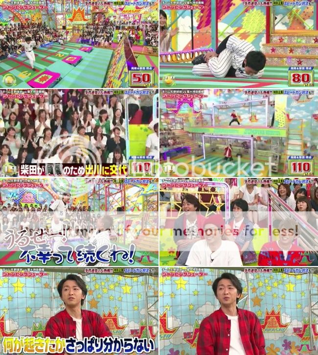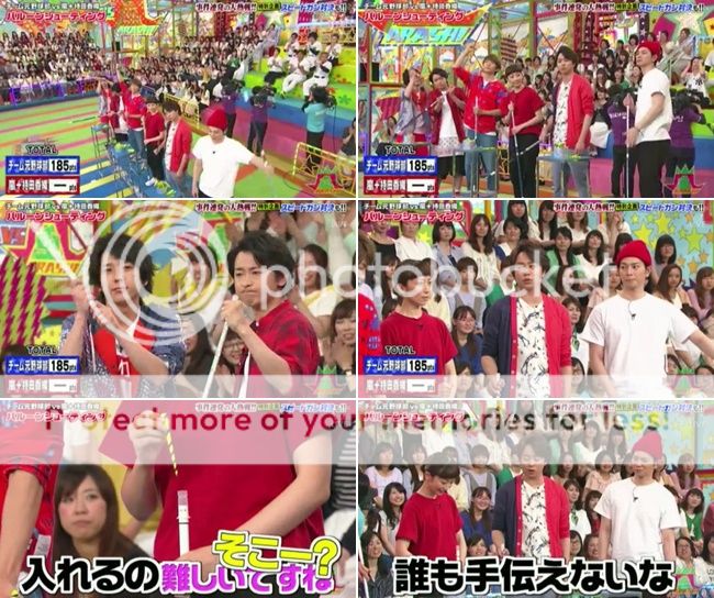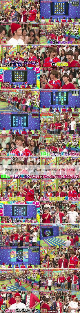 雅紀很懊惱覺得可惜,但是末子一直說不會啊很快了。真的呀!!結果我說主播你不是在胡鬧是什麼!!翔自己不打自招問大家知道為何他要從官的下方攀上去嗎?因為通常30分的按鈕前面都有攝影機啊,所以翔想要帥氣的朝攝影機……結果………………這個30分按鈕…………沒有攝影機!!!哈哈哈哈哈!!!白忙一場啊你!!!NINO就吐槽說對啊然後感覺有個妖怪出現一樣。請看圖解釋。