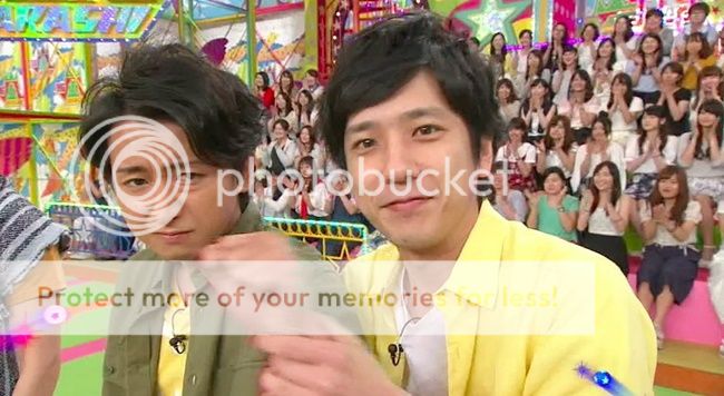 先是映畫組。翔好會幫忙嘉賓番宣哦,就開始問了TOMA電影的內容,然後J應該之前就聽TOMA說過了吧,於是問說電影不是關於腦袋方面的嗎所以在開拍前要去上一下課程了解大腦結構什麼的。問TOMA在這個課程有記錄下什麼內容?TOMA就說了某個醫學詞(吧?)被TOMA這麼一說那句話,翔說『難道不像TOMA拍的那隻洗衣精的CM嗎?』於是TOMA就念了一次CM裡的那句アリエル。然後我們家NINO當然不服輸,因為他也代言了洗衣精啊!!於是小可愛就立刻站起來學了自己在CM裡會說的那句受けてたつ!哈哈哈!!然後一臉得瑟的樣子坐了下來。好啦!!你贏了!!兩個洗衣精都好用啦。
