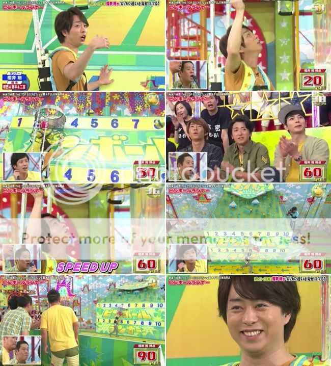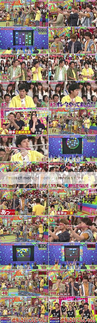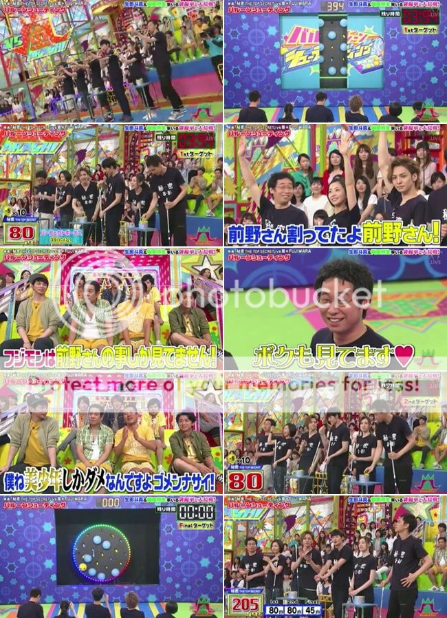這次嵐第一關就沒PERFECT了,因為小小的黃球太難射中了。NINO一顆都沒射到(我自然的就會看NINO那個方向所以確定他是真的都沒射到)。可是這個人就是賊,在遊戲結束時候他就故意射了那顆剩下的小黃球然後說自己剛剛射到了啊。這不算啦!!!第二關還是藤本桑抽到不能玩。第二關依舊沒PERFECT但是也沒射到任何一顆藍色球就是了。第三關NINO抽到了不能射。雖然PERFECT了,但是也射到了不少的藍色氣球啊。最後得分只有110分。這個環節讓映畫組翻盤了。