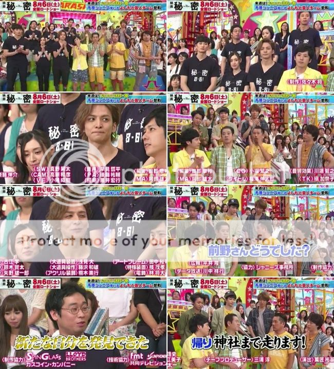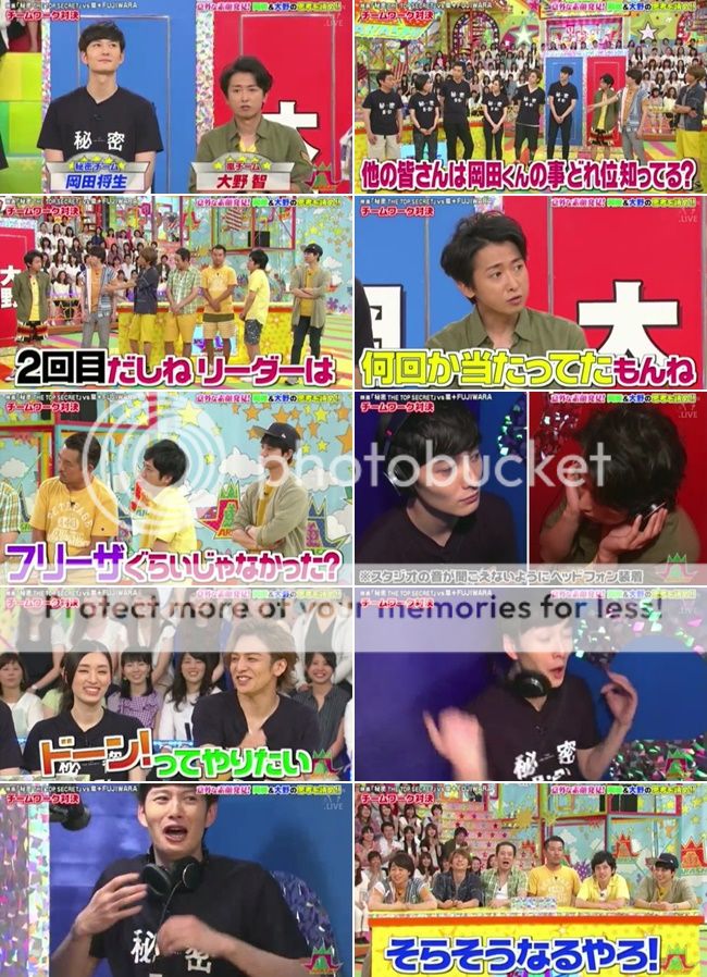 天音這時候問TOMA既然電影名稱是『秘密』,那有什麼關於嵐的秘密可以跟大家分享的嗎?真是喜歡TOMA來啊!!每次都會來爆料。TOMA說『前些時候和嵐的各位一起吃飯了,雖然和J一起吃飯機率很大就是了。結果那天NINO穿了睡衣來赴約。』NINO笑了出來的說『對於我來說那件完全就是外出服啊。』所以這是認知不同嗎?TOMA確認『說的是那件黃色的T恤。』雅紀就幫忙搭話說那件真的是NINO很普遍會穿的T恤。是松崗修造桑送他的T恤。TOMA再確認是那件T恤前面會印很大的字樣『行け!今のままで!』NINO就說就是那個而且穿的平率已經常到都不知道被他磨了多少次。