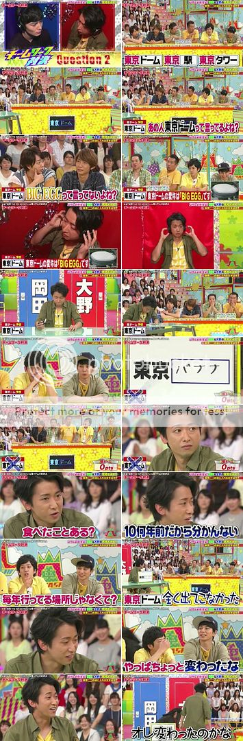J猜東京巨蛋、東京車展和東京鐵塔其中一個。還真是會聯想到這三個啊。但是對於每年都在巨蛋開控的這五個人答案一定是巨蛋吧。翔就說『可是大野桑都稱呼巨蛋為BIG EGG(大雞蛋)。』哈哈哈!!好可愛!!