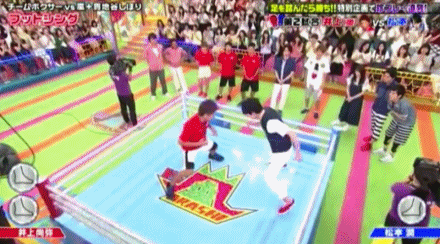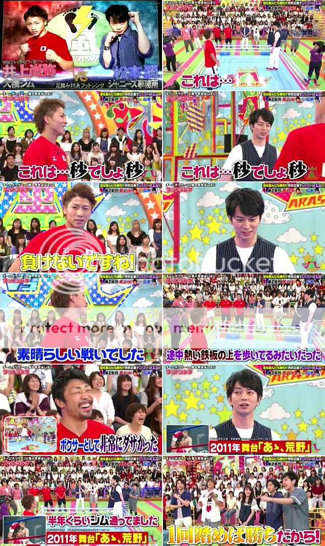 接下來是J要對壘國寶級的拳擊選手井上桑。因為之前J拍攝過拳擊選手的角色所以這次絕對不能輸。NINO還在旁邊說風涼話『只要踩到一次就贏了哦!』也要踩到才行啊。哈哈