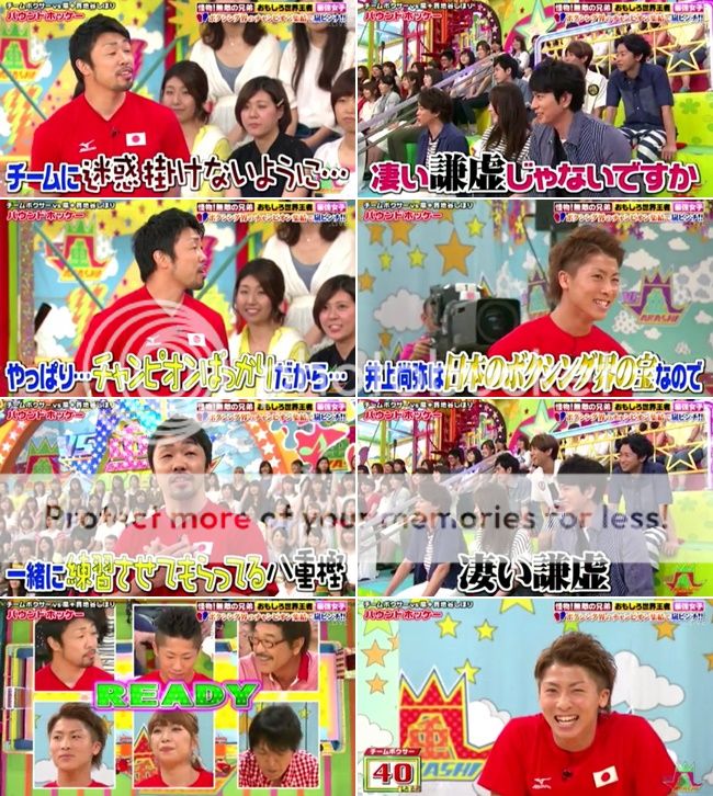 今天的嘉賓果然好強啊!!4位都是拳擊的冠軍選手啊。我說Jr桑又不是在說你幹嘛搶著幫人家道謝啊。NINO『說的太快了!』大家就吐槽Jr桑簡直已經變成常規的嘉賓了(連著兩週來)。Jr桑就說那是因為剛好自己的行程很空。哈哈哈!拳擊高手們今天是來宣傳9月要新播出的節目。
