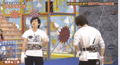 二宮和也你實在是太壞心眼了!!!不用一直提醒櫻井翔他溜肩啦。哈哈哈!!做成動圖的我其實更壞。噗!
