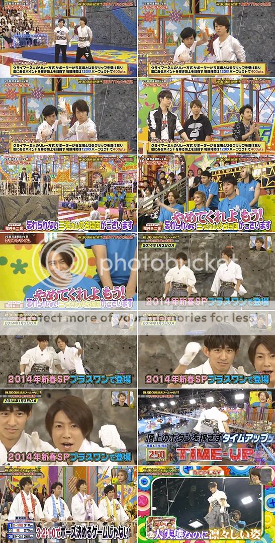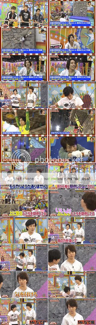 天音提醒各位今天為何要請磁石來攀岩。因為之前在午間時間播出時候,翔做了NINO的應援NINO就成功攀頂了。ちなみに那是2008年的事了。最近因為攀岩越來越難,NINO好像真的都很少攀頂,於是想讓這個組合再次出現讓NINO攀頂。